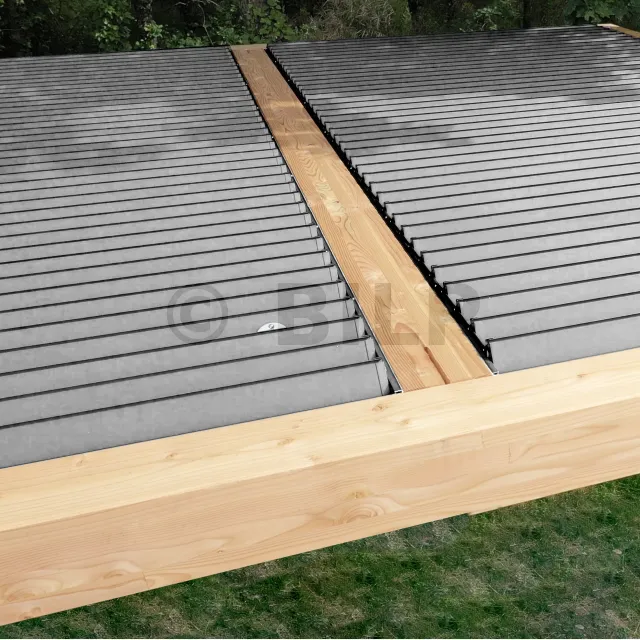 Abstand zwischen den Stützen: Unter der Annahme, dass der Mechanismus zwischen zwei Balken befestigt ist, muss der Abstand zwischen diesen beiden Balken gleich der Länge der Lamellen + 35 mm sein: 2 x 15 mm (Breite des Mechanismuskörpers) + 5 mm Spiel.