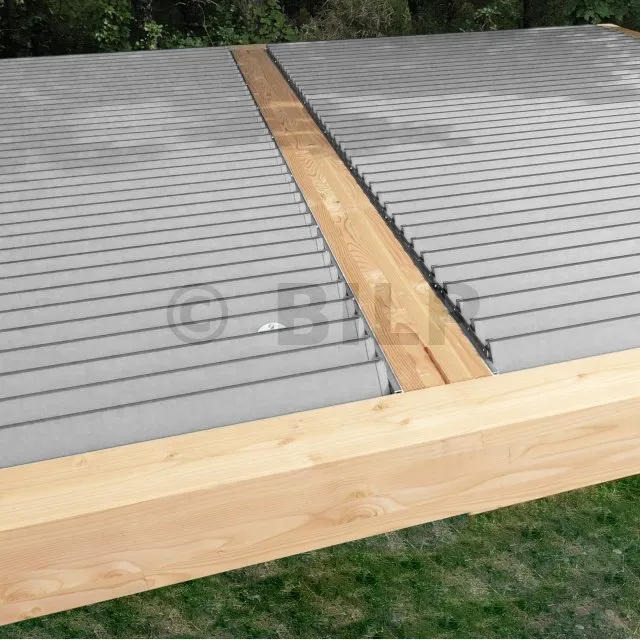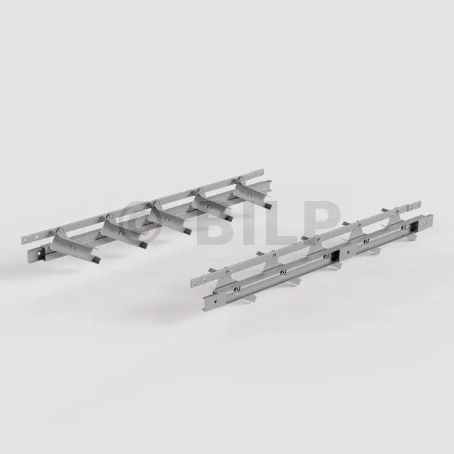 Abstand zwischen den Stützen: Unter der Annahme, dass der Mechanismus zwischen zwei Balken befestigt ist, muss der Abstand zwischen diesen beiden Balken gleich der Länge der Lamellen + 35 mm sein: 2 x 15 mm (Breite des Mechanismuskörpers) + 5 mm Spiel.