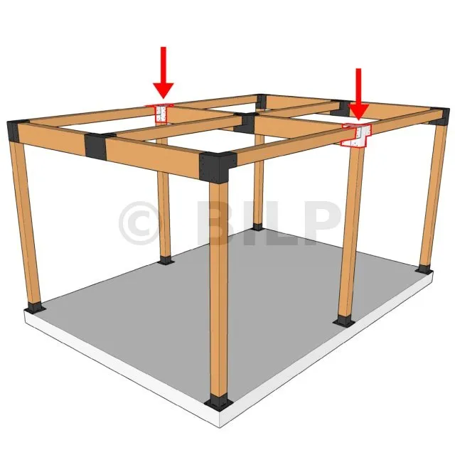 Es ermöglicht die senkrechte Verbindung von zwei 120 x 120 mm großen Balken zu einem großen 240 x 120 mm großen Balken, wobei das Ganze von einem 120 x 120 mm großen vertikalen Pfosten getragen wird.