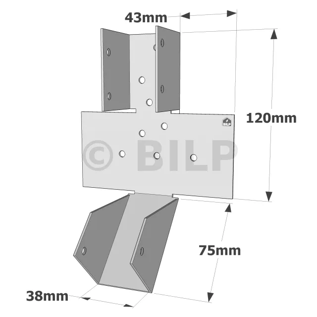 Der SPR-Balkenschuh mit einstellbarem Neigungswinkel ermöglicht die Befestigung von Sparren auf Holz- und Betonträger. Die Einstellung der Neigung wird auf der Baustelle für Neigungen bis zu 45° nach unten oder oben vorgenommen. Diese Einstellung muss nur einmal in die Richtung der gewünschten Neigung vorgenommen werden.