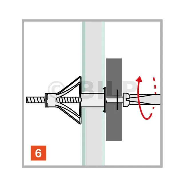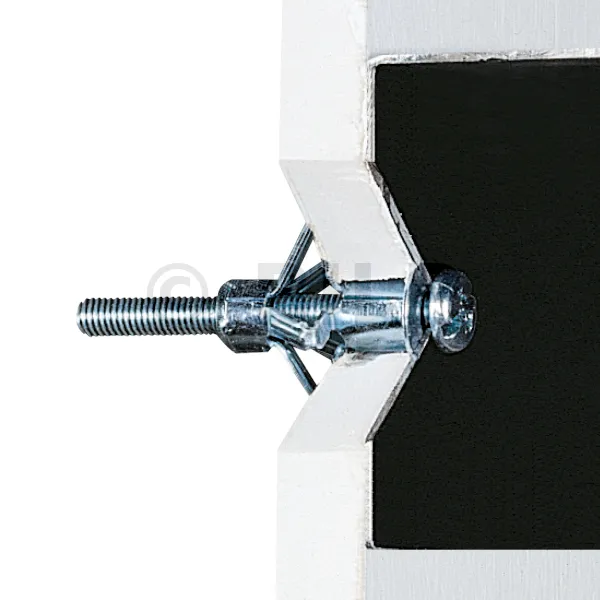 Der TMC-Spreizmetalldübel mit vormontierter Schraube mit metrischer Steigung ermöglicht die Befestigung von Elementen auf Gipskarton- oder Trockenbauwänden oder jedem Hohlraum, dessen Hohlraum den Abmessungen des Dübels entspricht.