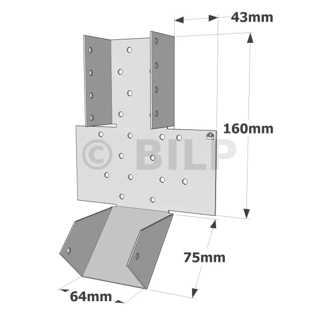 Der SPR-Balkenschuh mit einstellbarem Neigungswinkel ermöglicht die Befestigung von Sparren auf Holz- und Betonträger. Die Einstellung der Neigung wird auf der Baustelle für Neigungen bis zu 45° nach unten oder oben vorgenommen. Diese Einstellung muss nur einmal in die Richtung der gewünschten Neigung vorgenommen werden.