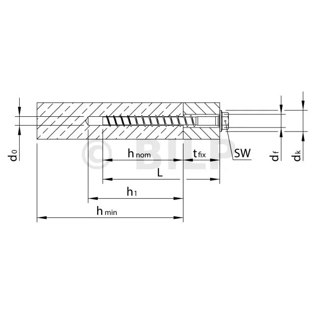- Nominale Verankerungstiefe, hnom175mm