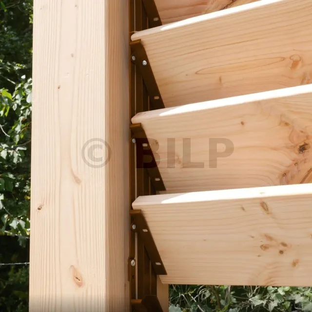 Stark, langlebig, UV-beständig. Mit diesem Mechanismus können Sie Ihre eigene bioklimatische Pergola, Ihre Sichtschutzwände oder Fensterläden mit verstellbaren Lamellen ganz nach Ihrem Geschmack und Ihren Maßen bauen. Sie tragen Holz- oder Aluminiumlatten.