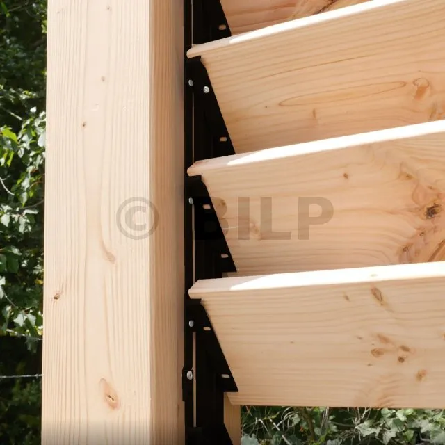 Stark, langlebig, UV-beständig. Mit diesem Mechanismus können Sie Ihre eigene bioklimatische Pergola, Ihre Sichtschutzwände oder Fensterläden mit verstellbaren Lamellen ganz nach Ihrem Geschmack und Ihren Maßen bauen. Sie tragen Holz- oder Aluminiumlatten.