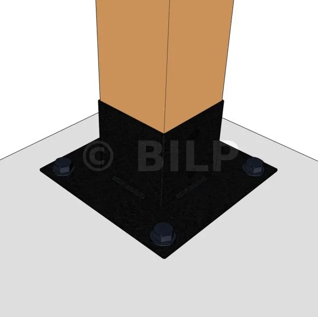 Dadurch können die Pfosten auf einer Platte oder Betonplatte befestigt werden.