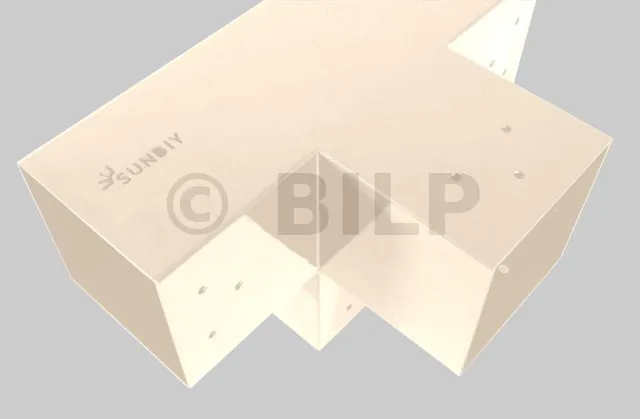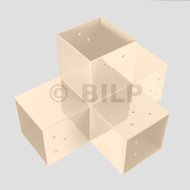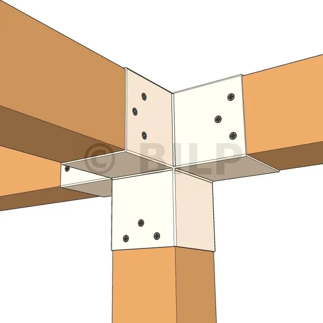 Damit können Sie einen 90 x 90 mm großen Balken senkrecht mit einem 90 x 90 mm großen Sparren verbinden, wobei das Ganze von einem 90 x 90 mm großen vertikalen Pfosten getragen wird.