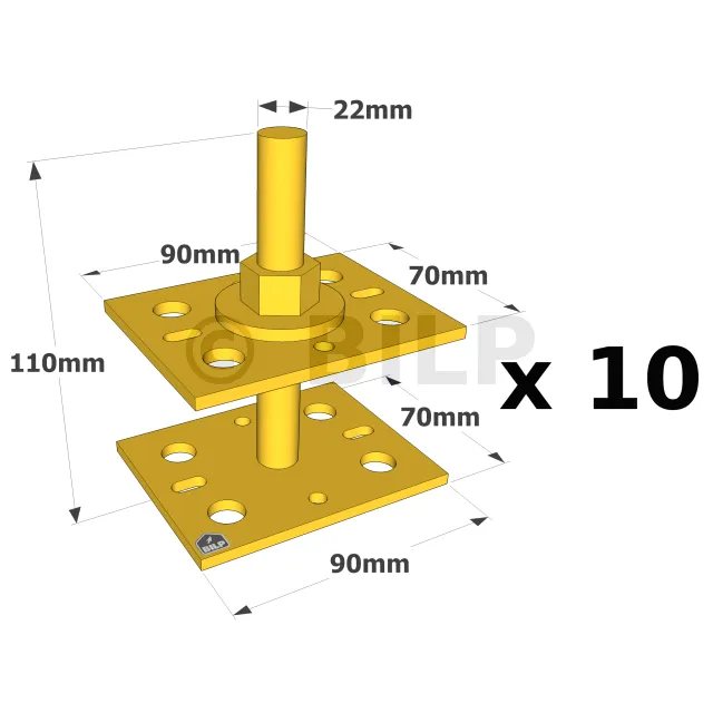 Pfostenfuß mini verstellbar, Höhe (B): 30 bis 90mm, Verpackung : 10 Stück - Réf. APB7090/100_10