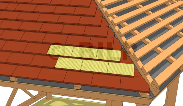 Der sichtbare Teil des Dachziegels, der vollständig vom Regenwasser benetzt wird, ist den Lattenabstand. Diese Fläche entspricht dem Abstand der Dachlatten. Sie muss auf der gesamten Dachfläche fest und parallel sein. Diese Größe variiert je nach Art des Dachziegels und der Dachneigung.