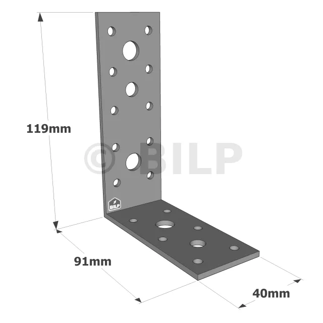 - Bohrungen der Lasche BSchrauben oder Nägel : 10 Ø5; Bolzen : 1 Ø 8,5 - 2 Ø 11