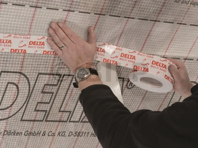 Zum Verkleben von Überlappungen und Enden von DELTA®-Sieben (Dachunterspannbahnen, Regensperren und Dampfsperren), zum Ausbessern kleinerer Schäden und zum Herstellen von Membrananschlüssen an einzelnen Punkten. DELTA®-MULTI-BAND M100, mit seiner doppelten