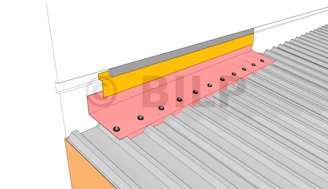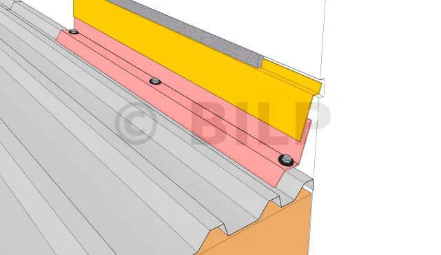 Anbringen des Dichtungsbleches (Fall eines Dachs mit Attika)texte=1|points=1095,359,1211,359,1317,289|taille=90|couleur=#ffffff|couleur_fleche=#ffffff