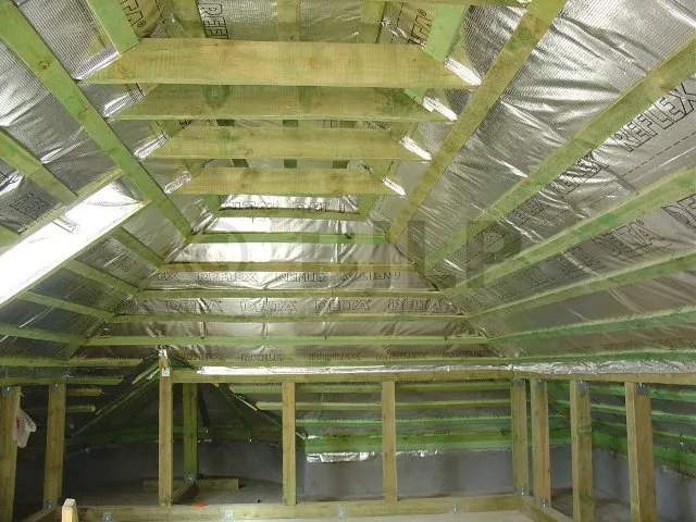 Verstärkte Dampfsperre mit metallisierter Oberfläche. Für Luftdichtheit in gedämmten Konstruktionen (Wände, Dächer, Böden). Luft- und wasserdampfdicht. Reflektierende Oberfläche für mehr Komfort im Winter. Schutz vor elektromagnetischer Strahlung (> 30 dB).