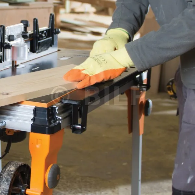- Seitliche Werkstückstütze zur Bearbeitung längerer Werkstücke.