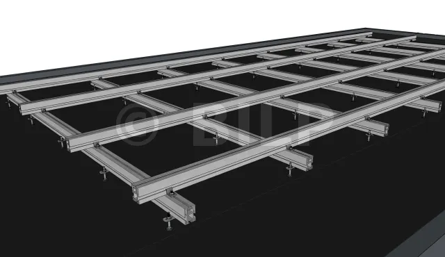 Nachdem du dir den Montageplan angesehen und die Position der horizontalen Stützprofile festgelegt hast, wirst du sie über der ersten Lage der Stützprofile anbringen und mit zwei Profilverbindern befestigen.