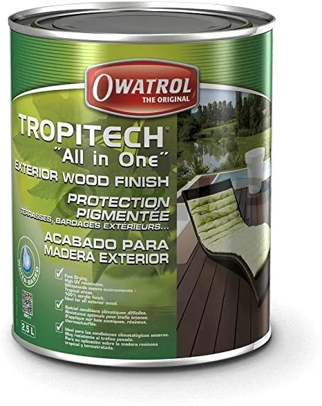 TROPITECH "All in One" - Langlebiger, getönter Schutz für Terrassen und Verkleidungen. Wässrige Phase