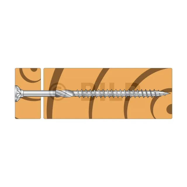 - Eine Schraube, deren Achse im Falle von ESCR(XXX) 45 bis 90° von der Holzmaserung entfernt ist, und 90° von der Holzmaserung für andere Schrauben.