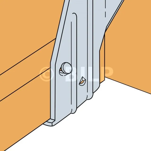 6. Wenn eine Lastaufnahme nach oben erforderlich ist, führen Sie zwei N3.75x30 Nägel in einem Winkel von 45° in den Untergurt des Trägers ein, und zwar auf Höhe der beiden seitlichen Kuppeln des Balkenträgers.