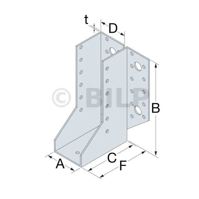 | A | B | C | D | F | t | Ø5 [mm] | Ø13 [mm] | Ø5 [mm] | |