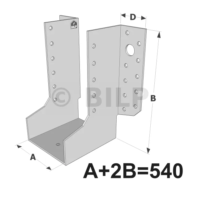 Große Balkenschuhe mit außenliegenden Schenkeln, GLE-Sortiment ECONOMIC (Größe 540mm, Dicke 2.5mm, Tiefe 90mm) - Réf. GLE540/2.5X