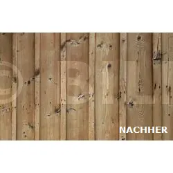 - Gründlich abspülen und mindestens 72 Stunden trocknen lassen (Holzfeuchtigkeit kleiner oder gleich 18%), bevor eine Oberflächenbehandlung aufgetragen wird.