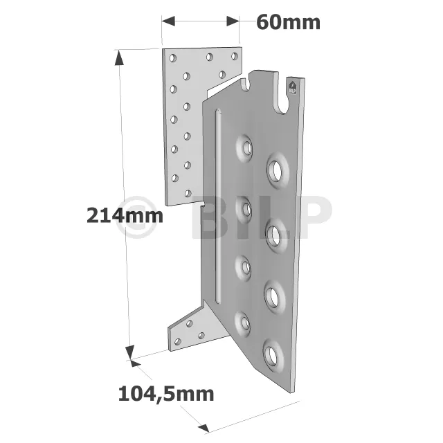 | Artikel | Abmessungen des Trägers [mm] | Abmessungen des Holzträgers [mm] | Abmessungen [mm] | Bohrungen auf Träger | Bohrungen auf den Nebenträger | ||||||||