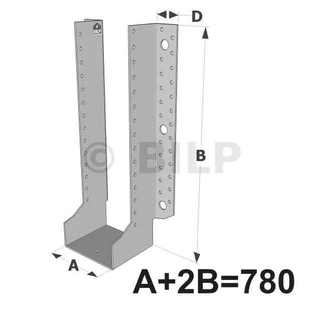 Große Balkenschuhe mit außenliegenden Schenkeln, ECONOMIC GLE-Sortiment (Größe 780mm, Dicke 2.5mm, Tiefe 90mm) - Réf. GLE780/2.5X