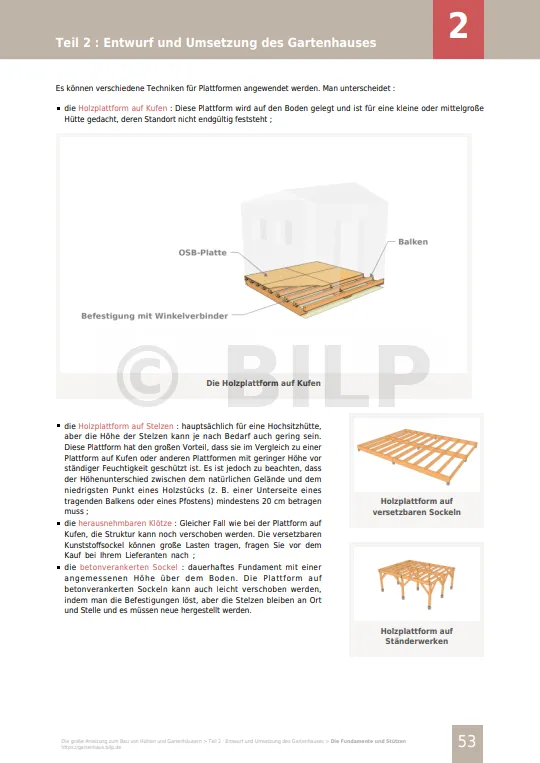 - die Anleitung zum Bau von Holzplattformen