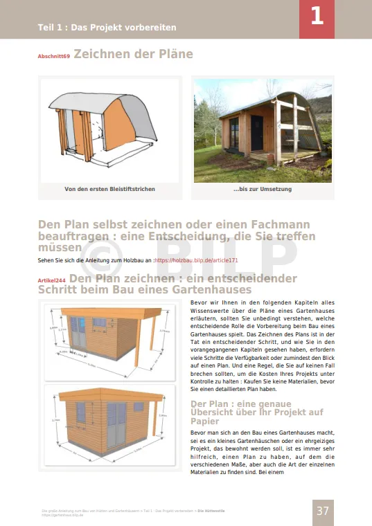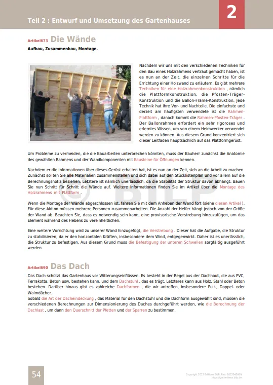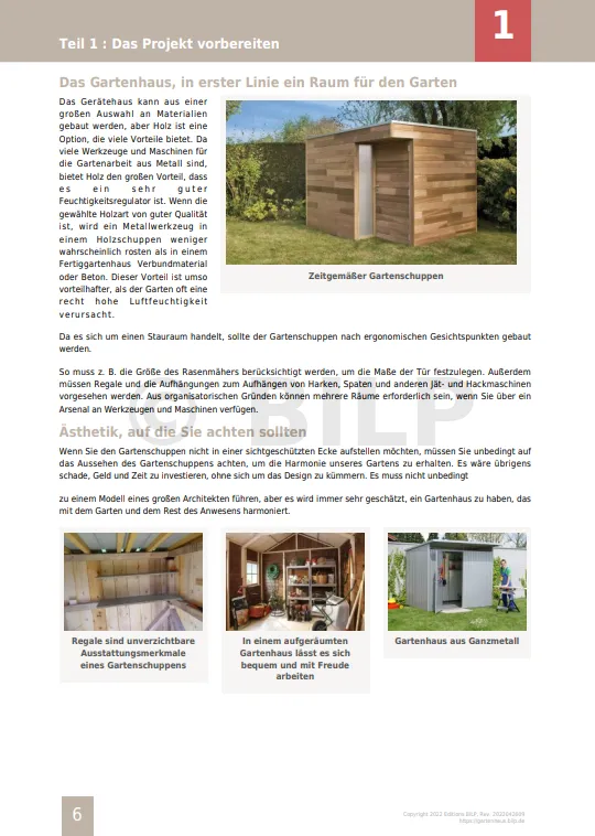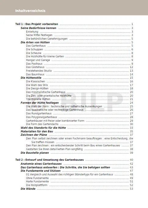 - die Anleitung zum Bau von Gartenhäusern und -hütten