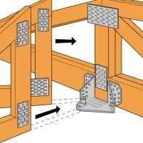 Der Rumpfbügel THJA26 wird im Fachwerk mit 38 mm Querschnitt verwendet. Es ermöglicht die Erstellung eines Grates durch Zusammensetzen der Grat- und Spannhalbbinder.