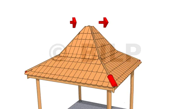 Stellen Sie vor allem sicher, dass die Firstziegel entgegen der vorherrschenden Windrichtung verlegt werden. Dadurch werden Windfänge vermieden.