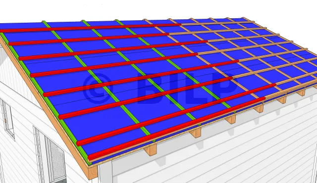 Die Konterlatten werden an den Sparren befestigt. Sie haben die Aufgabe, die Auflagefläche der Dachlatten anzuheben, damit eine Belüftung zwischen dem Dachschirm und der Rückseite der Dachziegel möglich ist. Eine Konterlatte muss mindestens 2 cm dick sein.