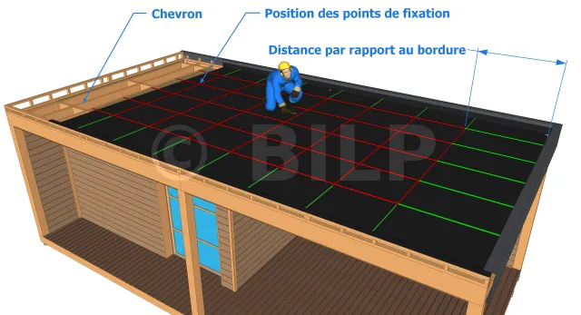 In Bezug auf die Positionen der Sparren Ihres Daches werden Sie zunächst die Installationsposition der ersten Profile auf Ihrem Dach bestimmen und markieren. Der Mindestabstand zu den Dachrändern, aber auch der optimale Abstand der Befestigungspunkte werden normalerweise vom Hersteller angegeben und müssen genau eingehalten werden.