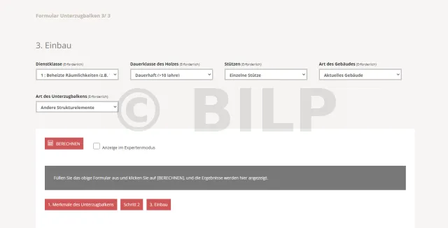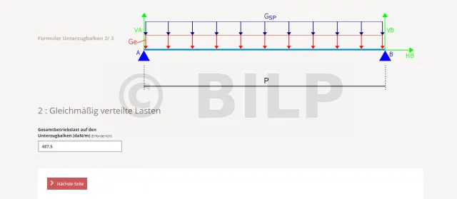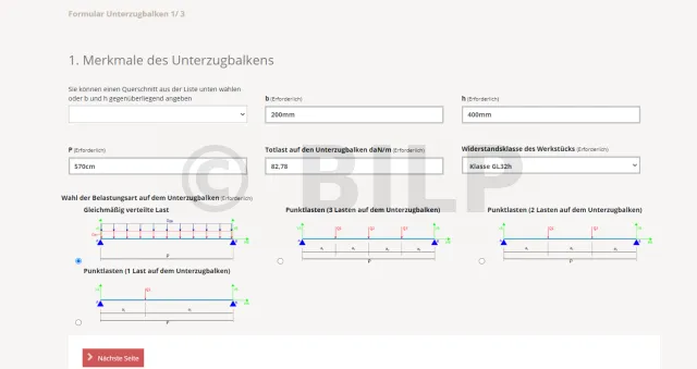 Um Ihnen zu helfen, das Berechnungstool korrekt mit den richtigen Daten auszufüllen, sollten Sie sich zunächst den Artikel über Anleitung zum Tool "Balken prüfen" ansehen, der Ihnen die einzugebenden Merkmale genau erklärt.