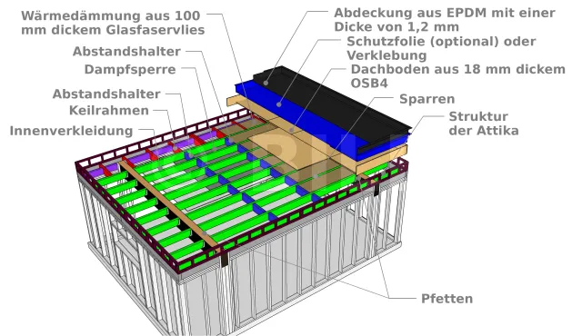 - Art der Dacheindeckung : EPDM-Membrane 1,2 mm