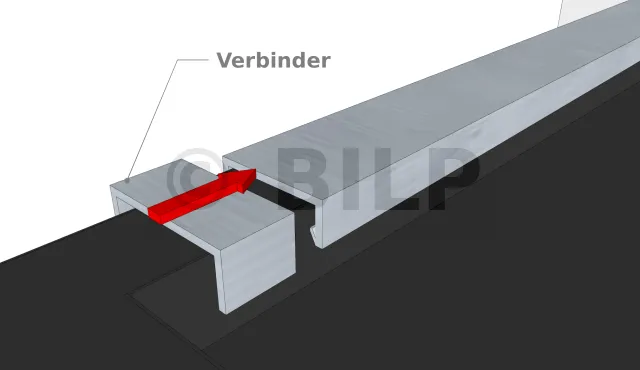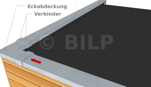 Der Verbinder dient der Abdichtung und der Verbindung zwischen der Eckabdeckung und den geraden Abdeckungen.
