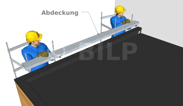 In diesem Schritt gehen Sie wie oben beschrieben vor, indem Sie zuerst den Verbinder auf die Randabdeckung legen und dann die rechte Mauerabdeckung anbringen.