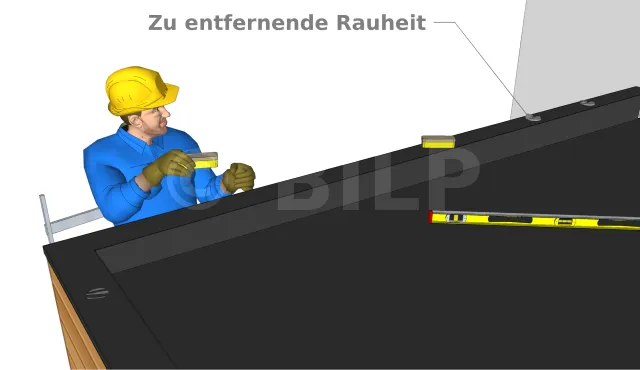 Zunächst müssen Sie die Oberfläche reinigen, indem Sie alle Unebenheiten und Vorsprünge entfernen und sicherstellen, dass die Oberfläche vollkommen glatt ist, damit die Abdeckungen darauf geklebt werden können.