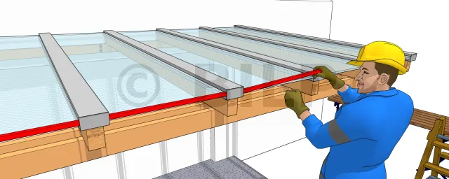 Befestige die Plattenstopper (2 cm Abstand zu den Profilen) mit Schrauben (oder Popnieten), auf die du zur Abdichtung eine Silikondichtung aufträgst.